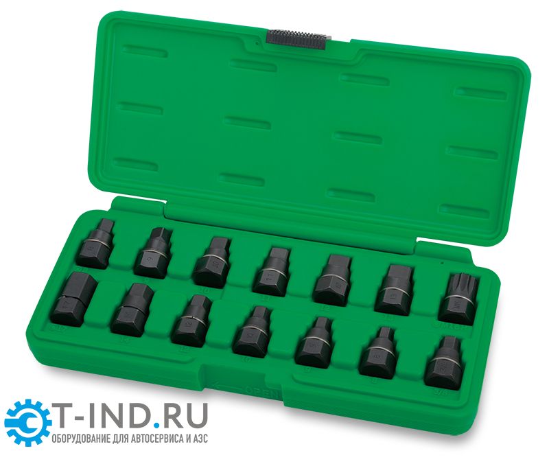 Набор головок усиленных для отворачивания масляных пробок, 14 предметов TOPTUL