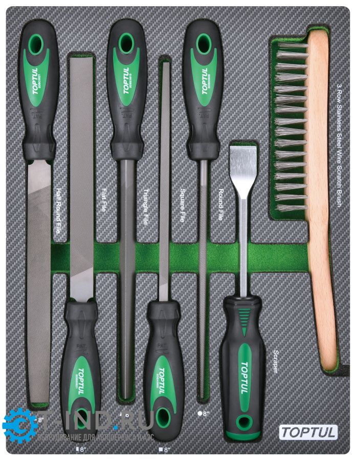 Набор инструментов, напильники, шабер и щетка, 7пр. в мягком ложементе TOPTUL