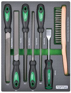 Набор инструментов, напильники, шабер и щетка, 7 пр. в мягком ложементе TOPTUL GEB0705