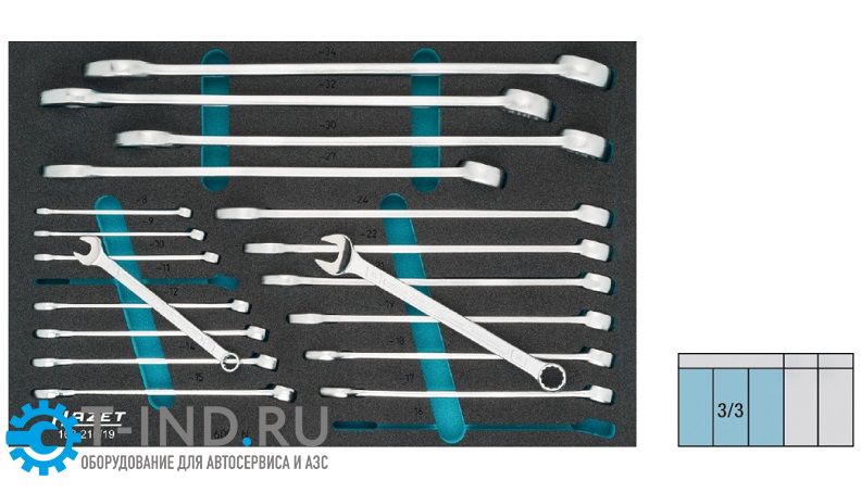 Набор комбинированных ключей в ложементе, 19 предметов.