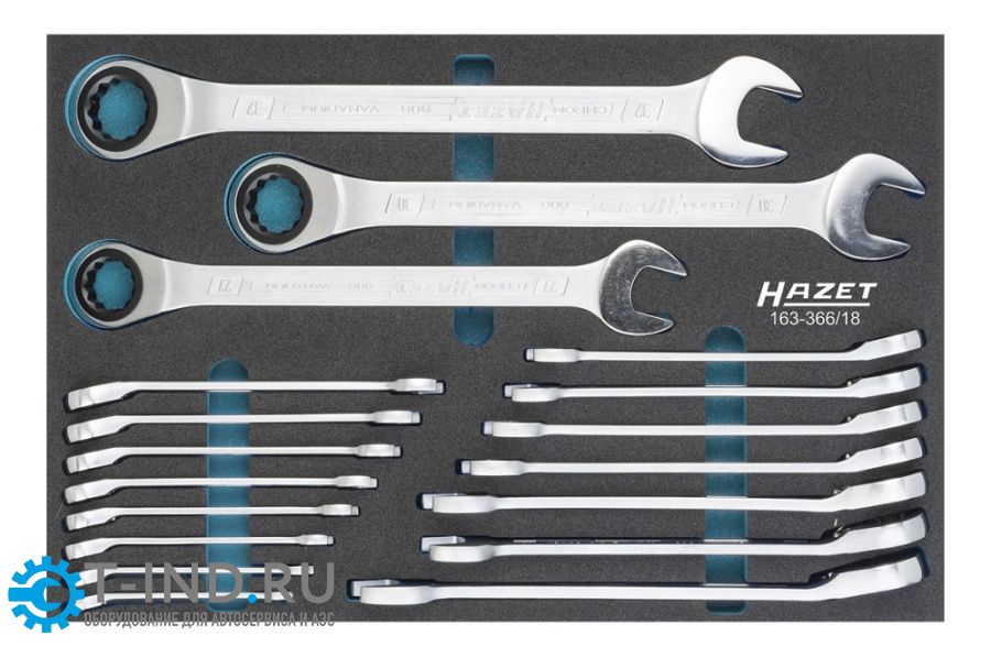 Набор комбинированных ключей с трещоткой на ложементе, 18 предметов.