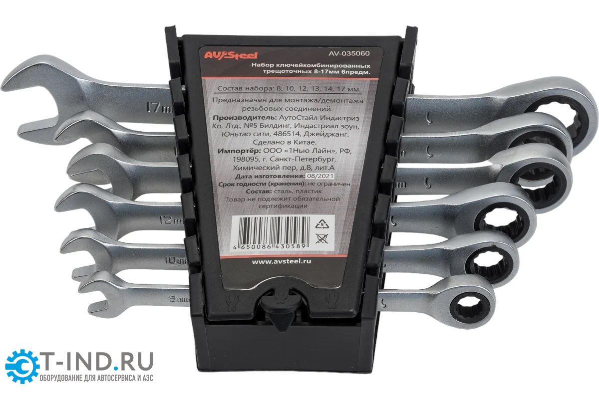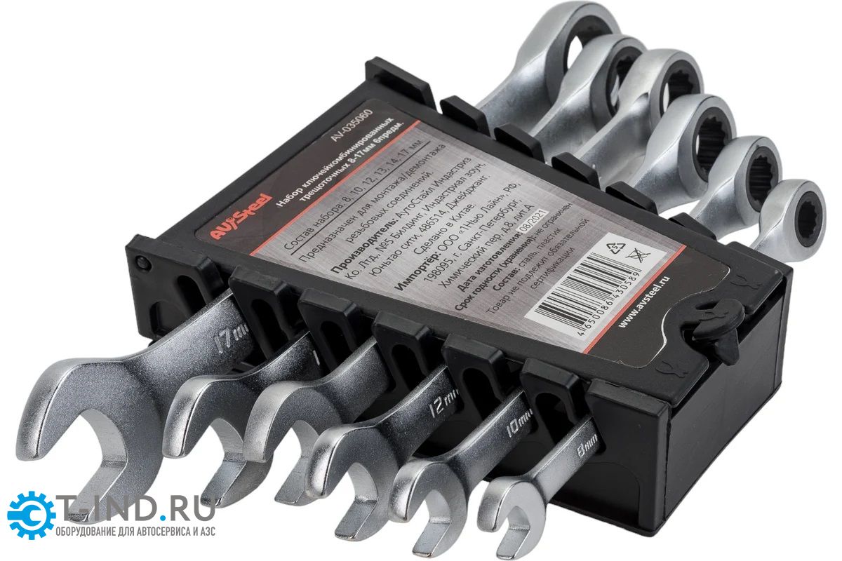 Набор ключей комбинированных трещоточных AV Steel AV-035060, 6 шт., 8-17мм