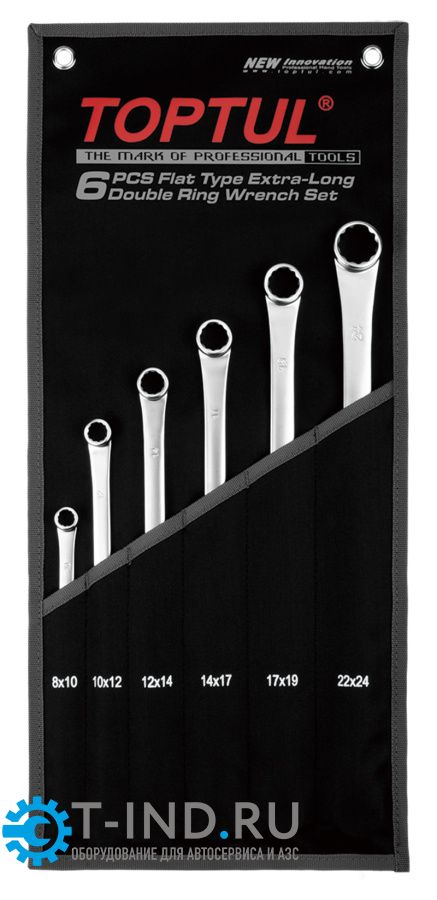 Набор ключей накидных прямых удлинненых 8-24 мм, 6 предметов на полотне TOPTUL GPAP0602