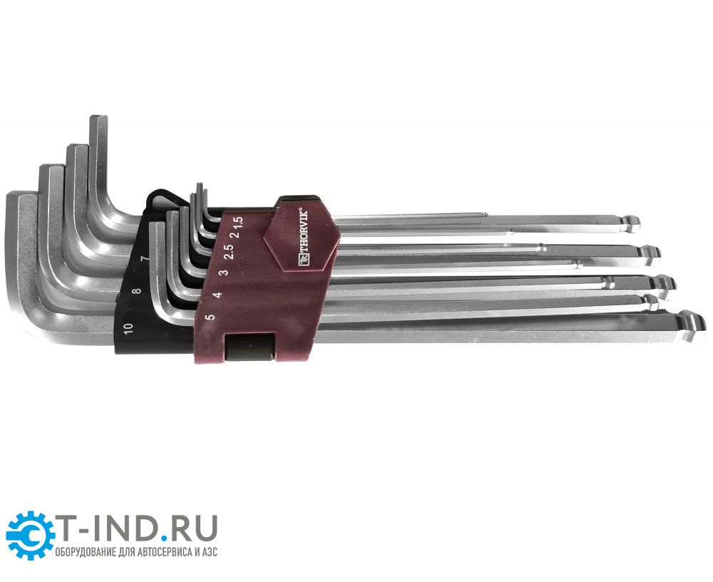 Набор ключей торцевых шестигранных Thorvik HKLB10S, удлиненных с шаром, H1.5-H10, 10 пр.