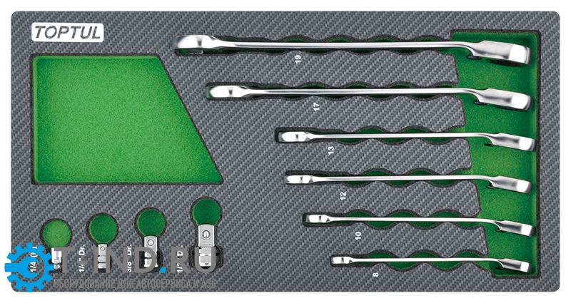 Набор комбинированных трещоточных ключей 8-19 мм, 10пр. в мягком ложементе TOPTUL