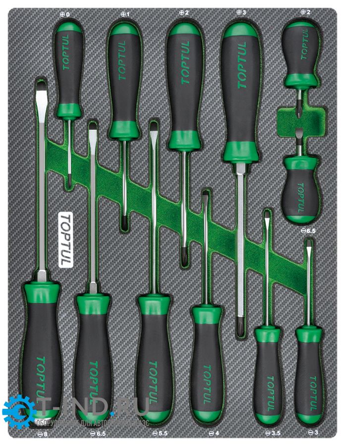 Набор отверток крест и шлиц, 12 пр., в мягком ложементе TOPTUL