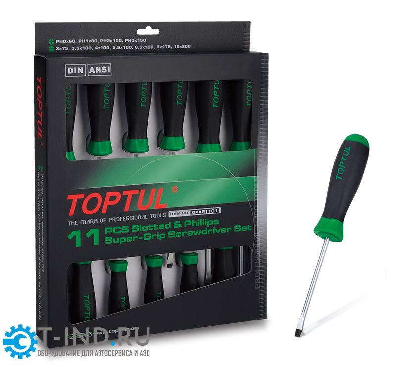 Набор отверток (крест и шлиц) серии Pro, 11 предметов в картоне TOPTUL