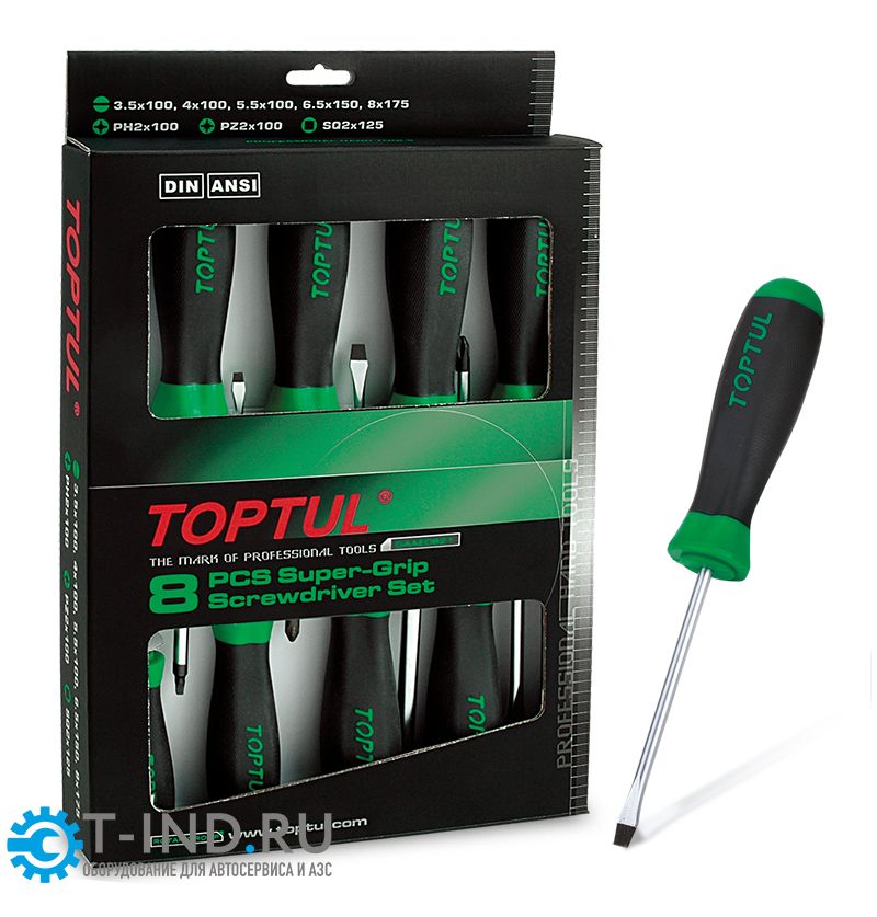 Набор отверток (PH, PZ, SL, SQ), 8 предметов в картоне TOPTUL