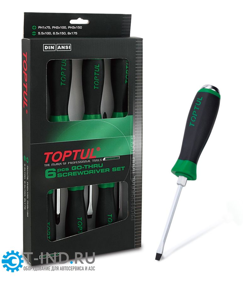 Набор отверток ударных (крест и шлиц) 6 предметов в картоне TOPTUL