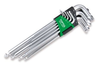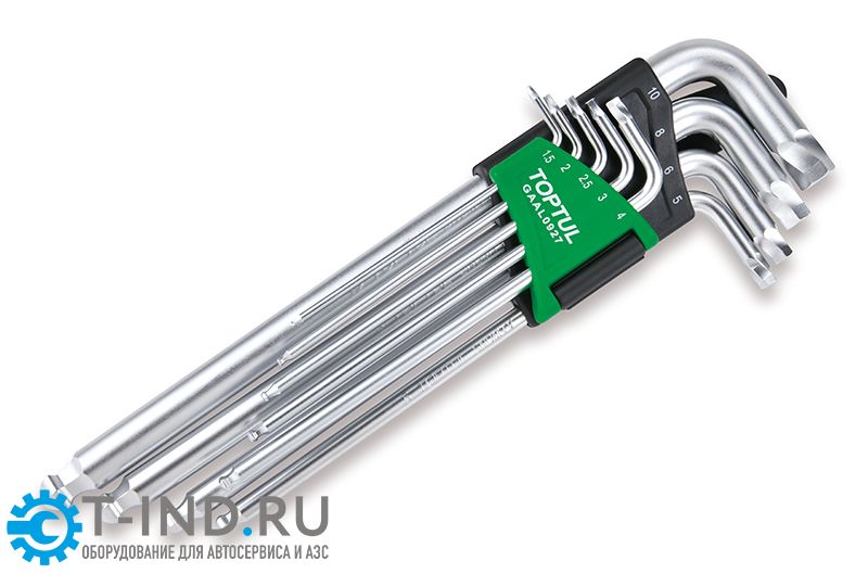 Набор шестигранников Г-образных 1,5-10 мм, с экстрактором и шаром, экстрадлинные, 9 пр. TOPTUL