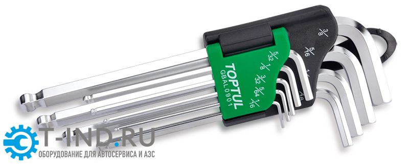 Набор шестигранников Г-образных дюймовых 1/16"-3/8", 9 предметов TOPTUL