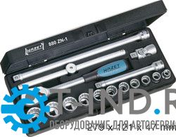 HAZET Набор торцевых головок (12-гр) 3/8" с аксессуарами, 16 предметов