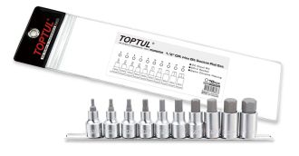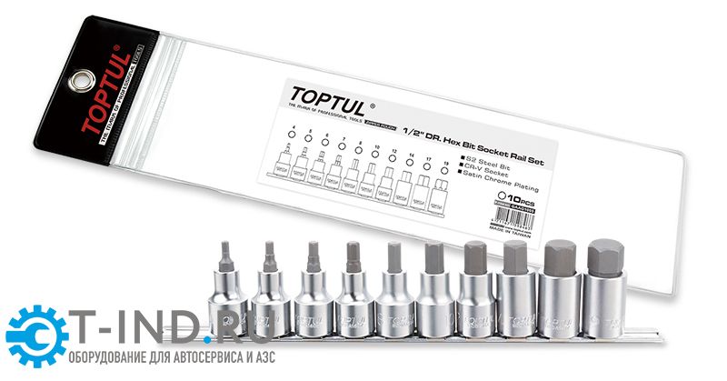 Набор торцевых головок 1/2" с шестигранными вставками 4-19 мм L=55 мм на планке 10 предметов TOPTUL