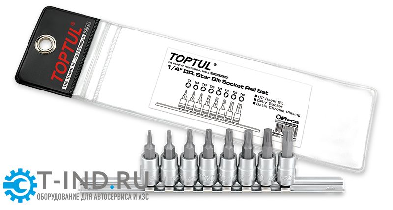 Набор торцевых головок 1/4" TORX T8-T40 L=37 мм на планке 8 предметов TOPTUL