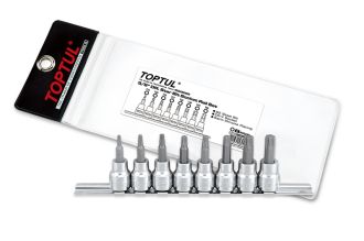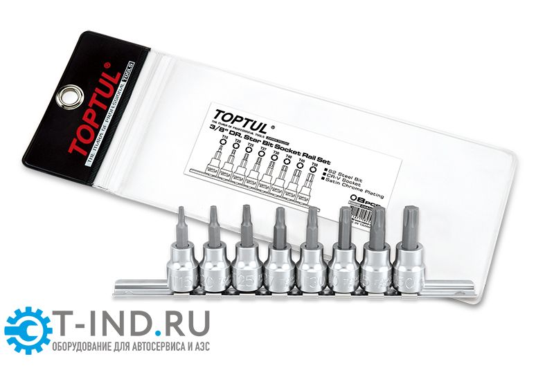 Набор торцевых головок 3/8" TORX T15-T50 L=48 мм на планке 8 предметов TOPTUL