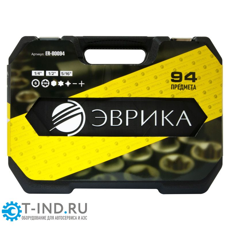 Набор торцевых головок 6-гранных ЭВРИКА ER-80094, 1/4", 1/2"DR, 94 пр.