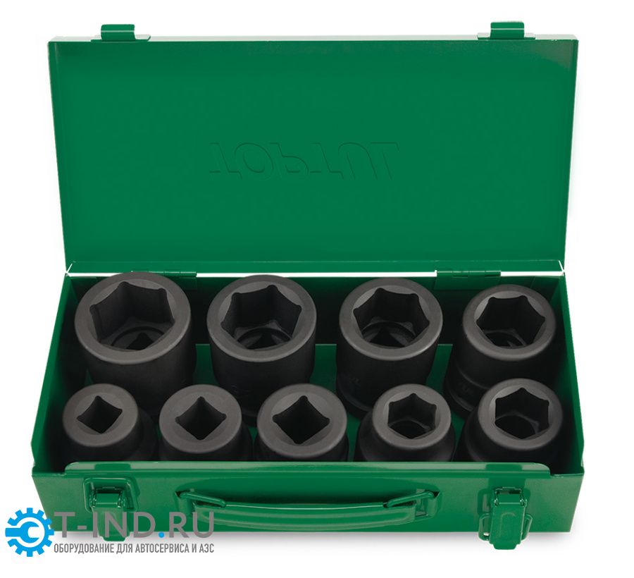 Набор ударных головок 1" 17-41 мм 4 и 6-гранных в металлическом ящике, 9 предметов TOPTUL