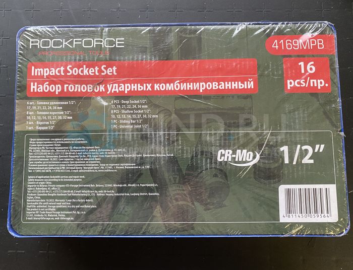 Набор ударных головок 6-гр. Rock Force RF-4169MPB(52616), 1/2", 16 пр.