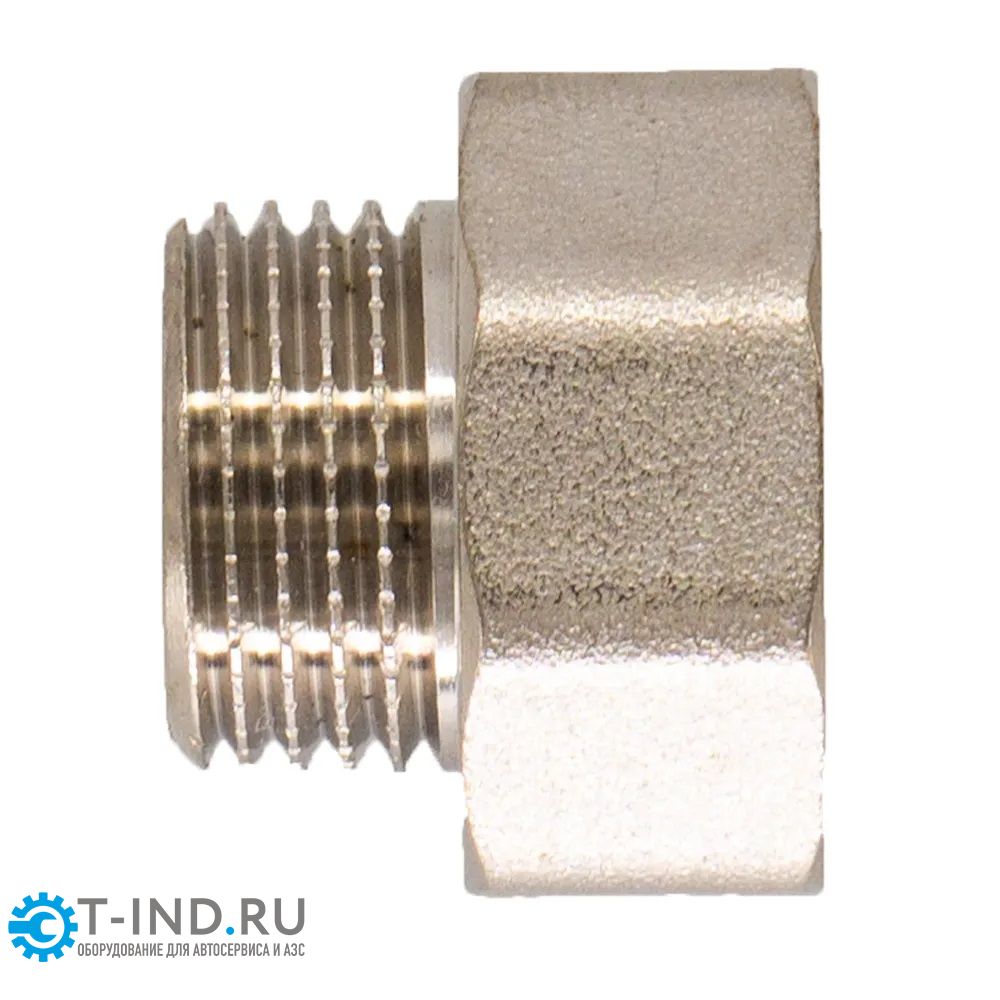 Переходник изготовлен методом горячего штампования из латуни с никелированным покрытием.