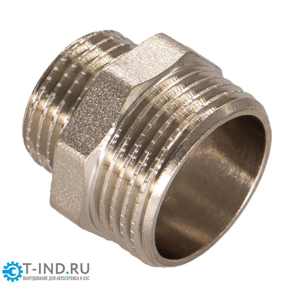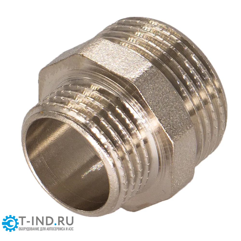 Ниппель переходной сантехнический 3/4"х1/2" штуцер / штуцер CTM - резьбовой фитинг с наружной резьбой для соединения элементов трубопровода равного диаметра. Бочонок сантехнический изготавливается из горячепрессованной латуни.