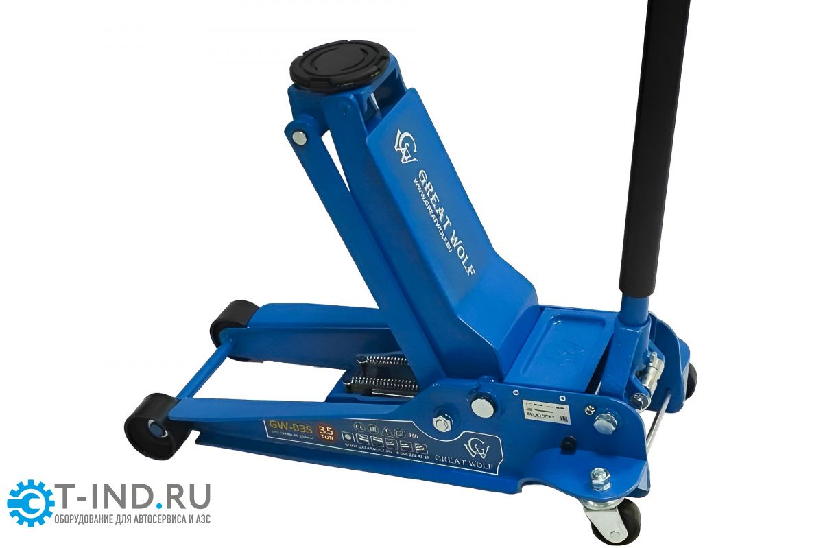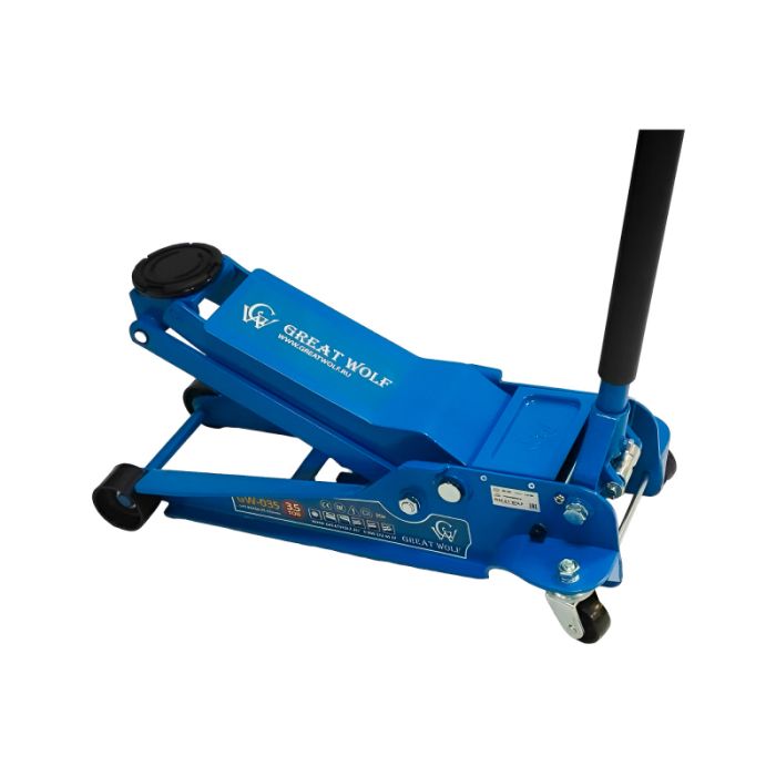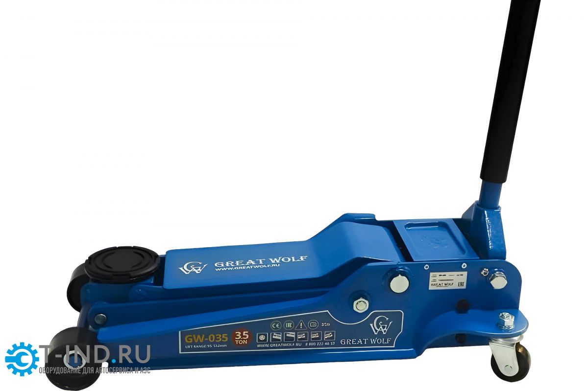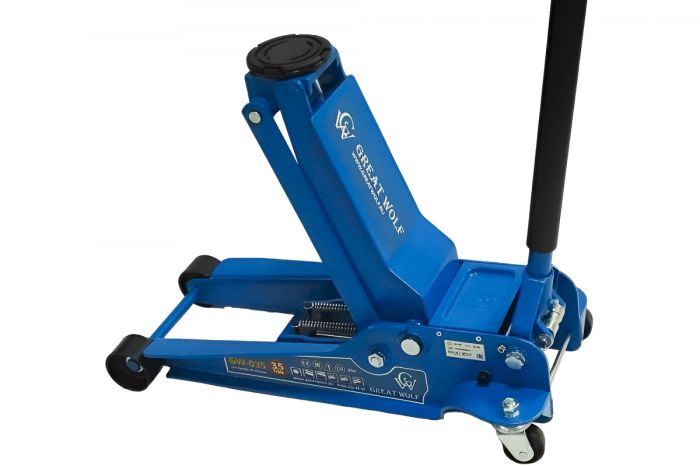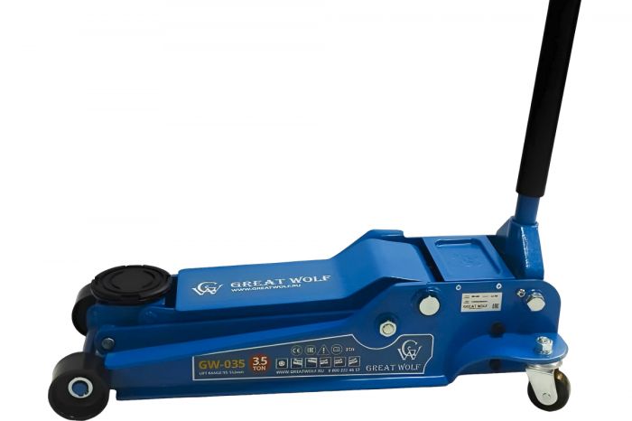 Низкопрофильный гидравлический подкатной домкрат Great Wolf 3.5 т, 95-552 мм GW-035 используется во время шиномонтажа или выполнения работ по ремонту ходовой части. Подходит для транспортных средств с низкой подвеской (клиренсом).