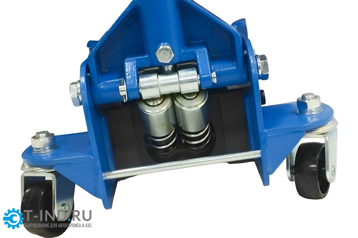 Двухштоковый механизм гарантирует быстрый подъем груза, а карданный механизм привода запорного клапана - плавное опускание автомобиля. Гидравлическая система домкрата оснащена клапаном защиты от перегрузки. Усиленная конструкция. Благодаря маневренным колесам домкрат легко и удобно перемещать.