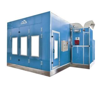 - Окрасочно-сушильная камера оснащена кабиной современного внешнего вида с конструкцией из окрашенных стеновых панелей с тепло- и звукоизоляцией. Кабина оснащается 3-створчатыми въездными воротами и сервисной дверью.