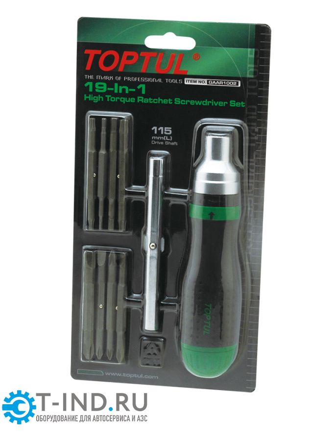 Отвертка реверсивная с набором бит и удлинителем 19в1 TOPTUL GAAR1002