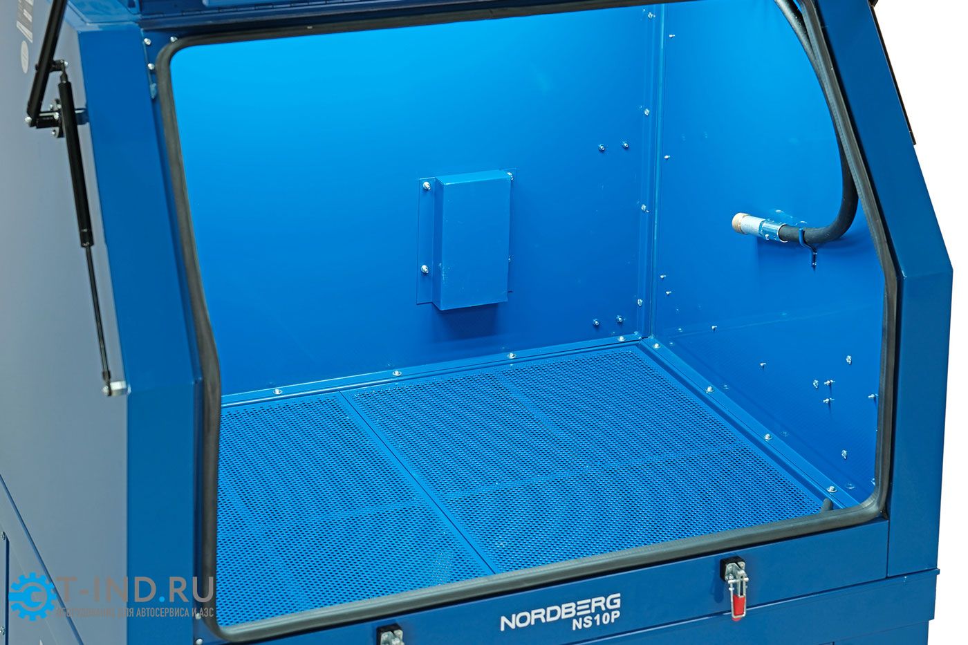 Пескоструйная камера с напорной системой подачи абразива NORDBERG NS10P – специализированное оборудование для обработки поверхности различных деталей в автосервисах и автотранспортных предприятиях. Предназначена для удаления с поверхности обрабатываемых деталей ржавчины, старой краски, загрязнений и других нежелательных покрытий, в том числе снятия заусенцев, сглаживания шероховатостей, упрочнения поверхности и пр. воздушно-абразивоструйным способом. Во время работы обрабатываемые детали находятся внутри закрытой, пескоструйной камеры.