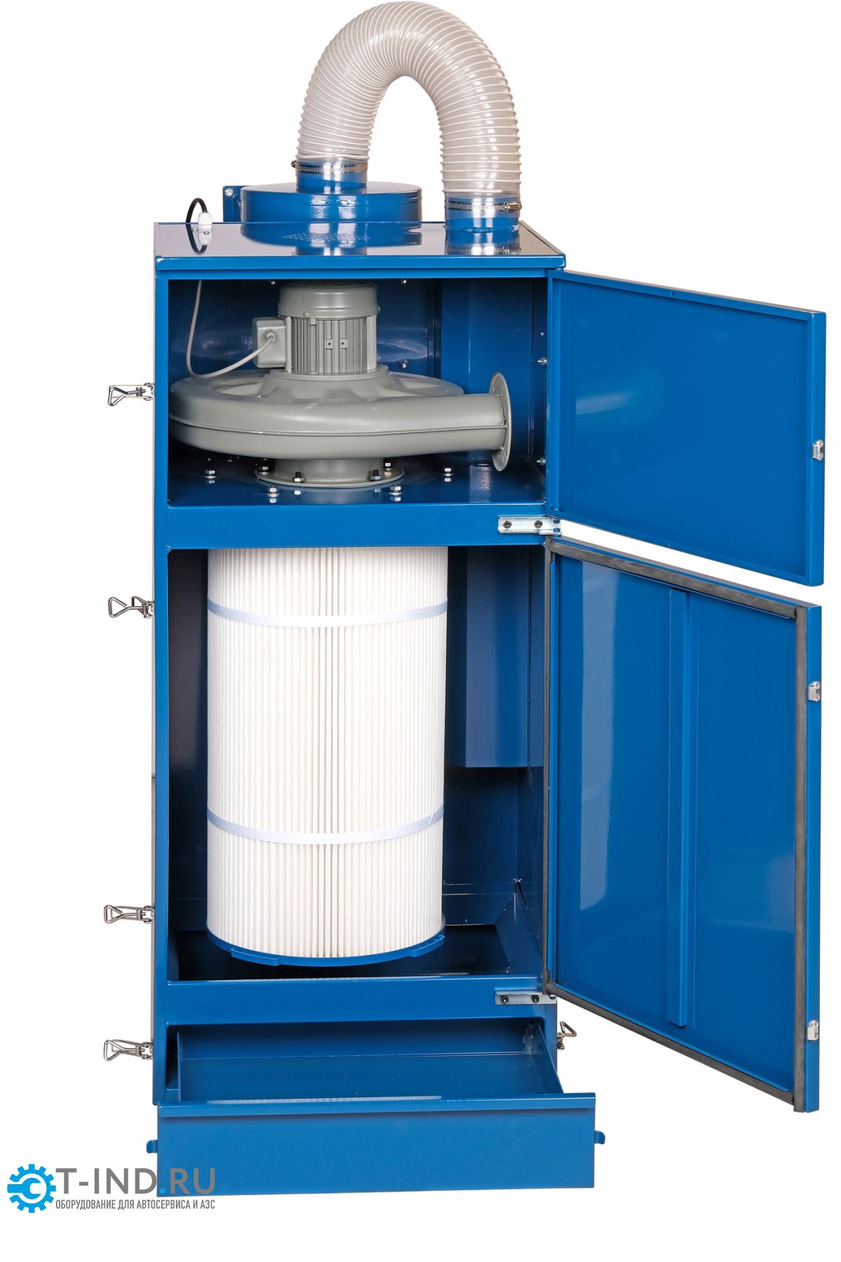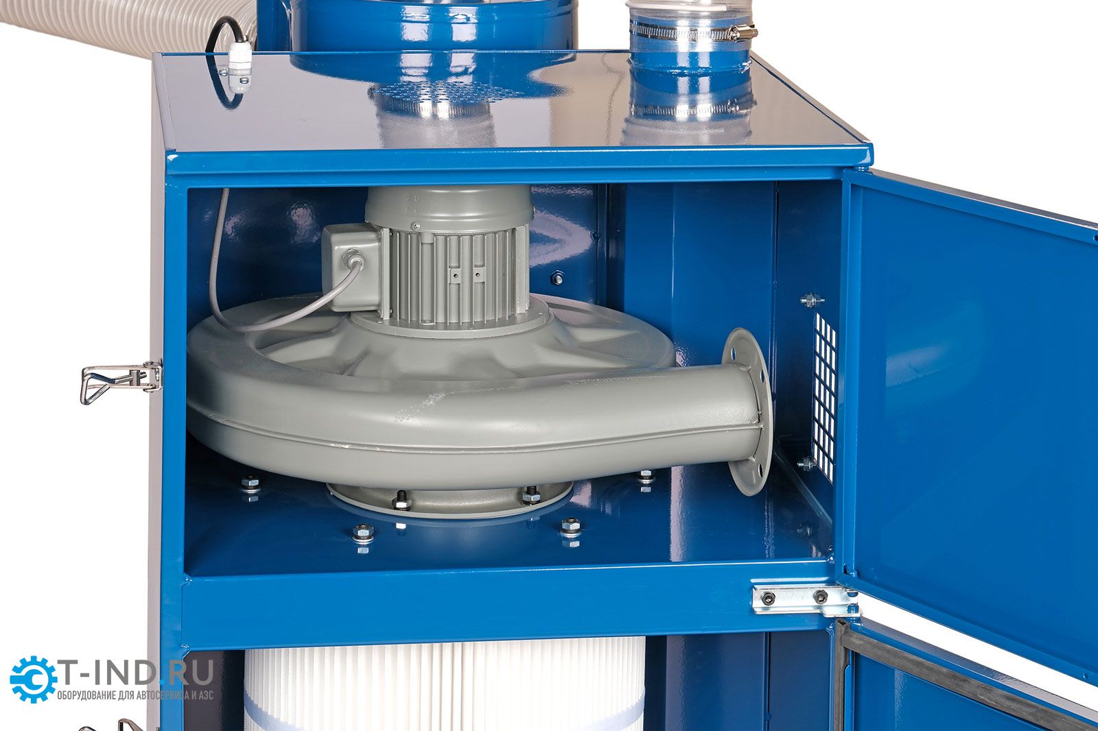 - Высокоэффективный пылесборник с циклоном и двухступенчатой системой очистки от пыли с мощным вытяжным вентилятором, который создает необходимое разрежение для высасывания пыли из камеры.