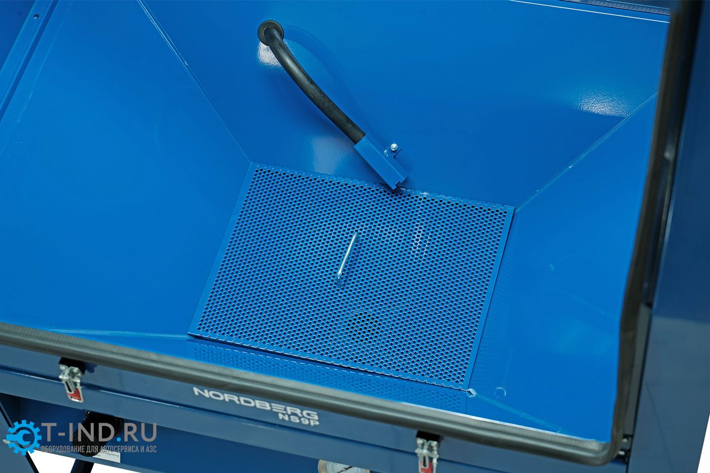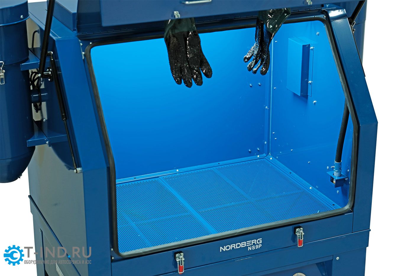 Пескоструйная камера с напорной системой подачи абразива NORDBERG NS9P – оборудование для обработки поверхности различных деталей в автосервисах и автотранспортных предприятиях. Предназначена для удаления с поверхности обрабатываемых деталей ржавчины, старой краски, загрязнений и других нежелательных покрытий, в том числе снятия заусенцев, сглаживания шероховатостей, упрочнения поверхности и пр. воздушно-абразивоструйным способом. Во время работы обрабатываемые детали находятся внутри закрытой пескоструйной камеры.