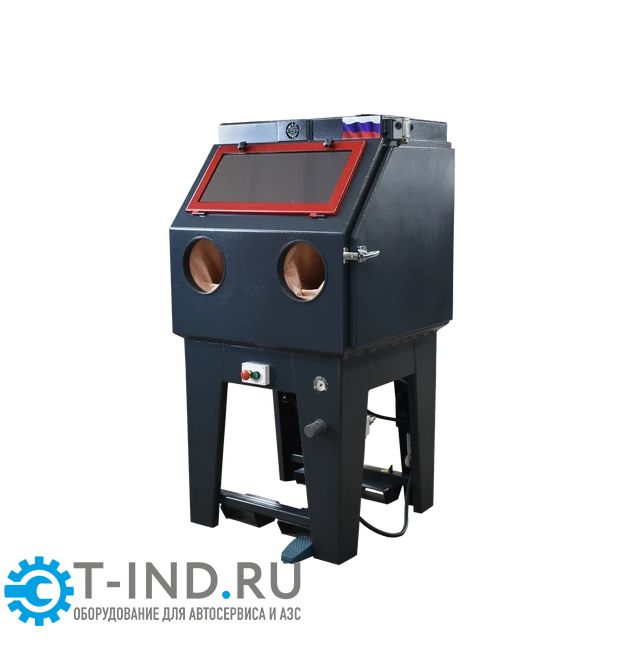 Камера по желанию заказчика может иметь фронтальную либо боковую загрузку, оснащена поворотным выдвижным или стационарным столом. Инжекторный пистолет комплектуется абразивоструйным соплом различных диаметров, внутри камеры дополнительно находится пистолет со сжатым воздухом для обдува очищенной детали от пыли.