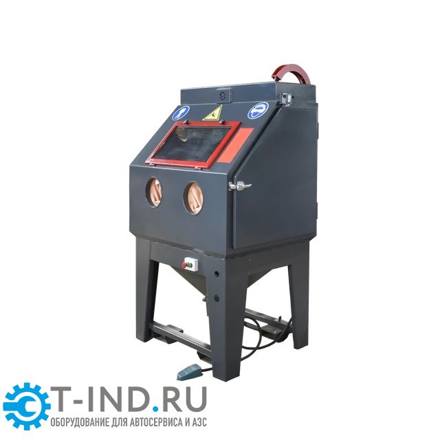Камера по желанию заказчика может иметь фронтальную либо боковую загрузку, оснащена поворотным выдвижным или стационарным столом. Инжекторный пистолет комплектуется абразивоструйным соплом различных диаметров, внутри камеры дополнительно находится пистолет со сжатым воздухом для обдува очищенной детали от пыли.