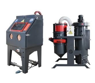 Система рекуперации напорного типа в комплекте с фильтром Н-ФВ-Р. Для очищения и возвращения в работу абразивного материала в камерах КСО напорного типа и пылеудаления из камер.