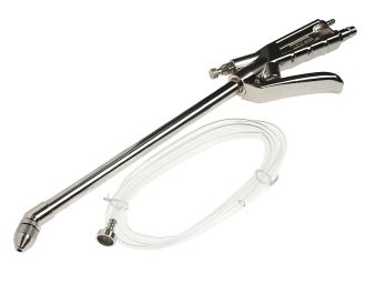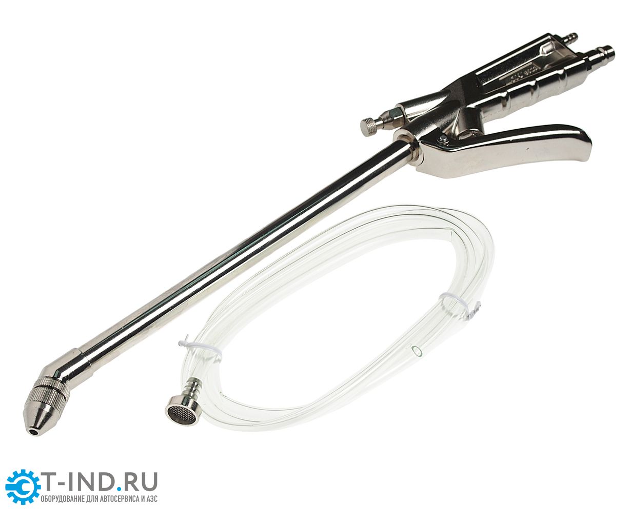 Пистолет для мойки двигателя подходит для удаления грязи с поверхностей. Оснащен шлангом для подключения емкости с жидкостью. Длинный носик облегчает доступ в труднодоступные места. Количество распыляемой жидкости регулируется винтом на передней части пистолета, а количество подаваемого воздуха — спусковым крючком.