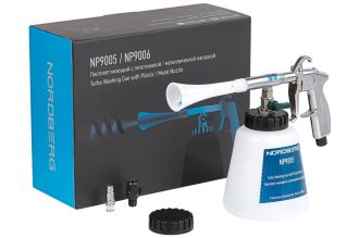 Пистолет моющий с гибкой вращающейся насадкой NORDBERG NP9005 – профессиональное оборудование для чистки салонов легковых автомобилей, среднего коммерческого и грузового транспорта. Благодаря пластиковой трубке-распылителю, описывающей круговые движения с помощью сжатого воздуха, и моющей жидкости эффективно вычищаются любые поверхности интерьера автомобиля.