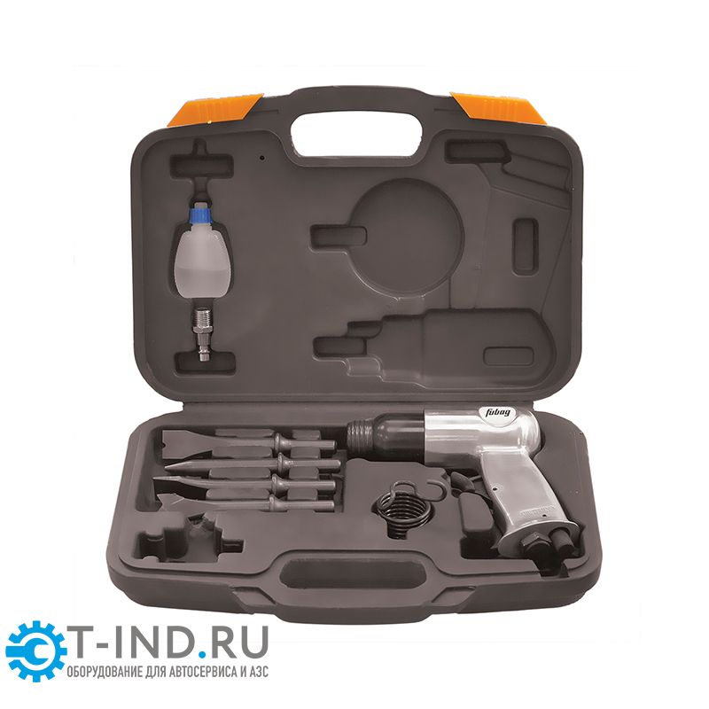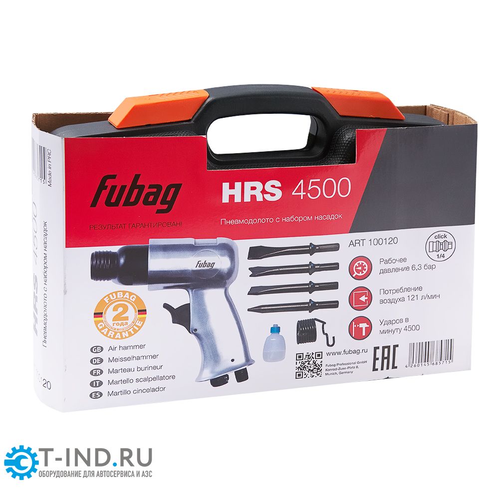 - Пневмодолото FUBAG HRS4500 поставляется в комплекте с удобным кейсом для хранения и транспортировки инструмента, а также с штуцером для надежного подключения к компрессору.