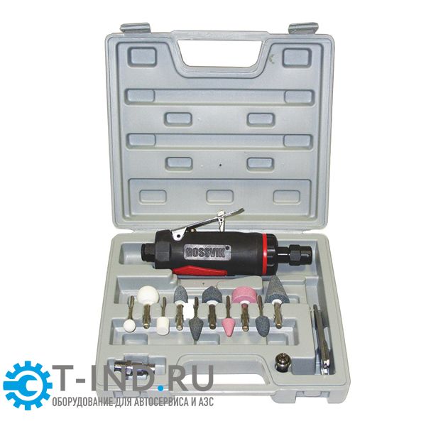 Пневмодрель Rossvik АТ 7033 ВК-1, 20000об/мин, в кейсе с набором насадок