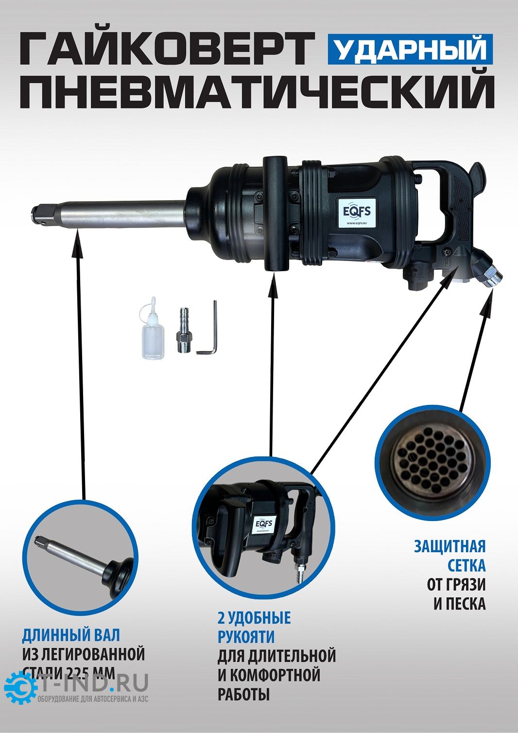 Пневмогайковерт ударный EQFS ES-7185, 1", грузовой, 4350 Нм