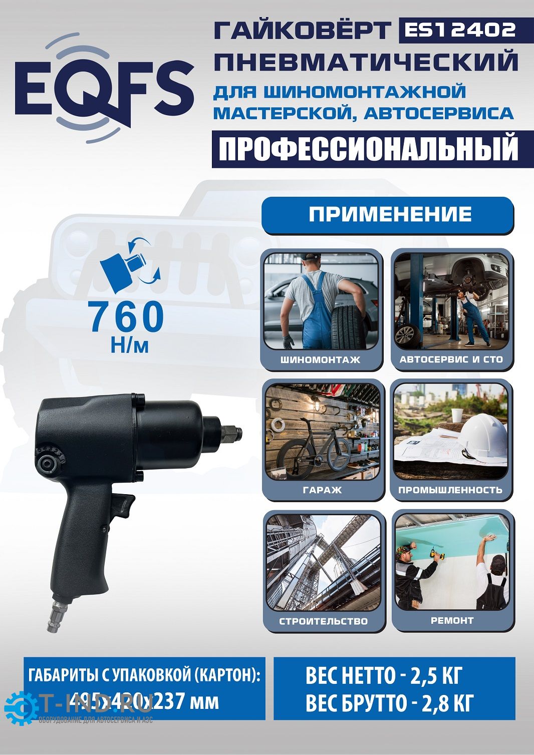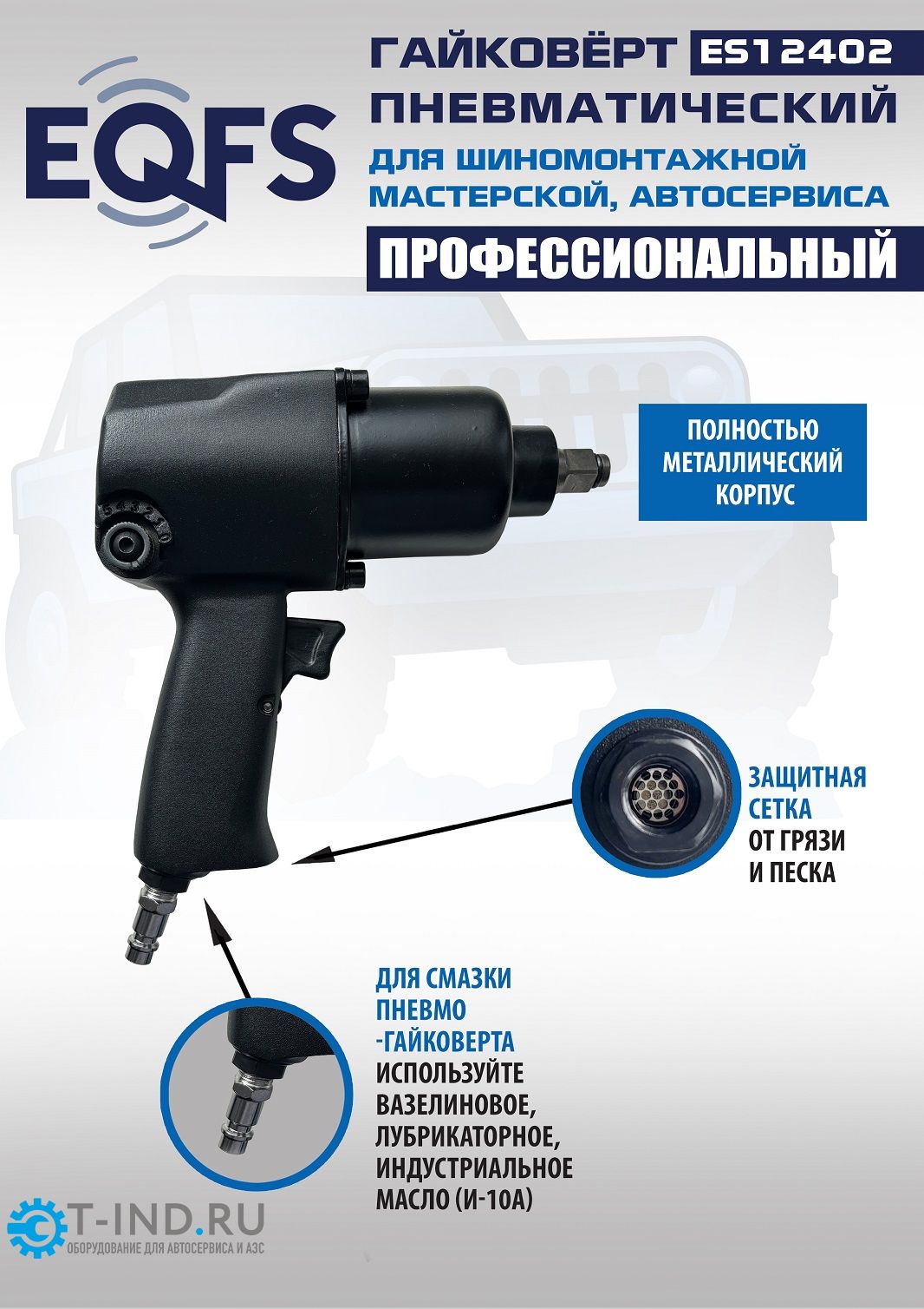 Пневмогайковерт ударный EQFS ES12402, 1/2", легковой, 760 Нм