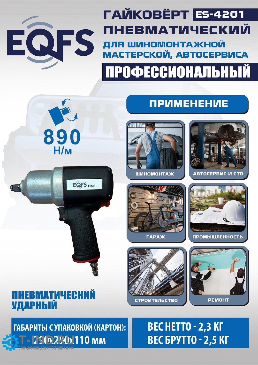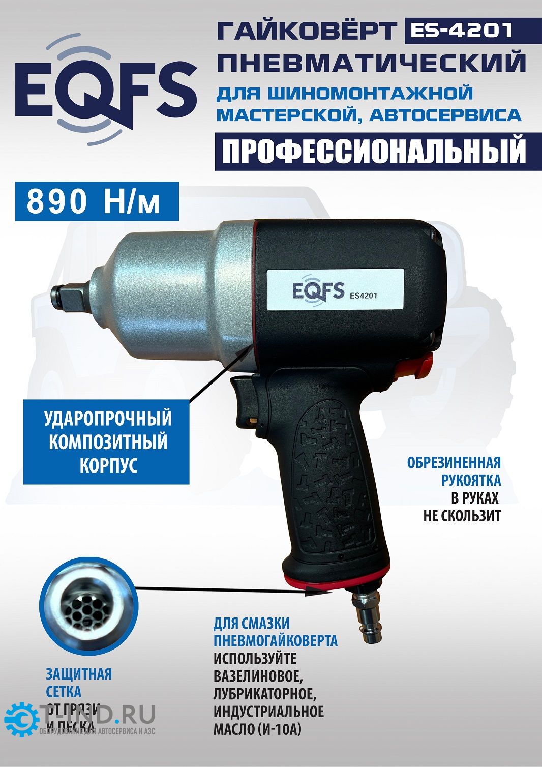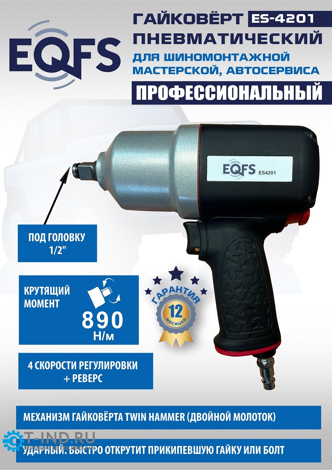 Пневмогайковерт ударный EQFS ES4201, 1/2", легковой, 980 Нм