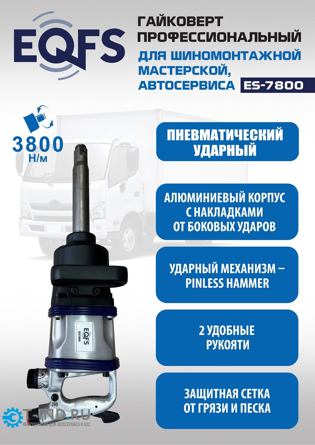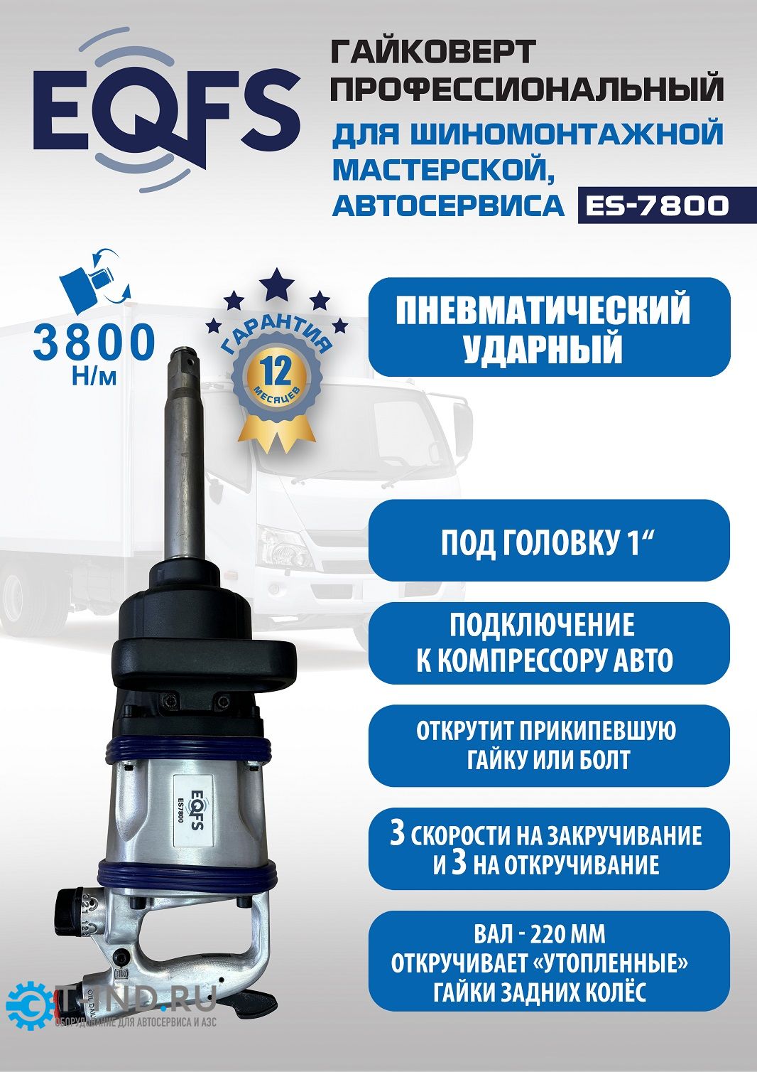 Пневмогайковерт ударный EQFS ES7800, 1", грузовой, 3800 Нм
