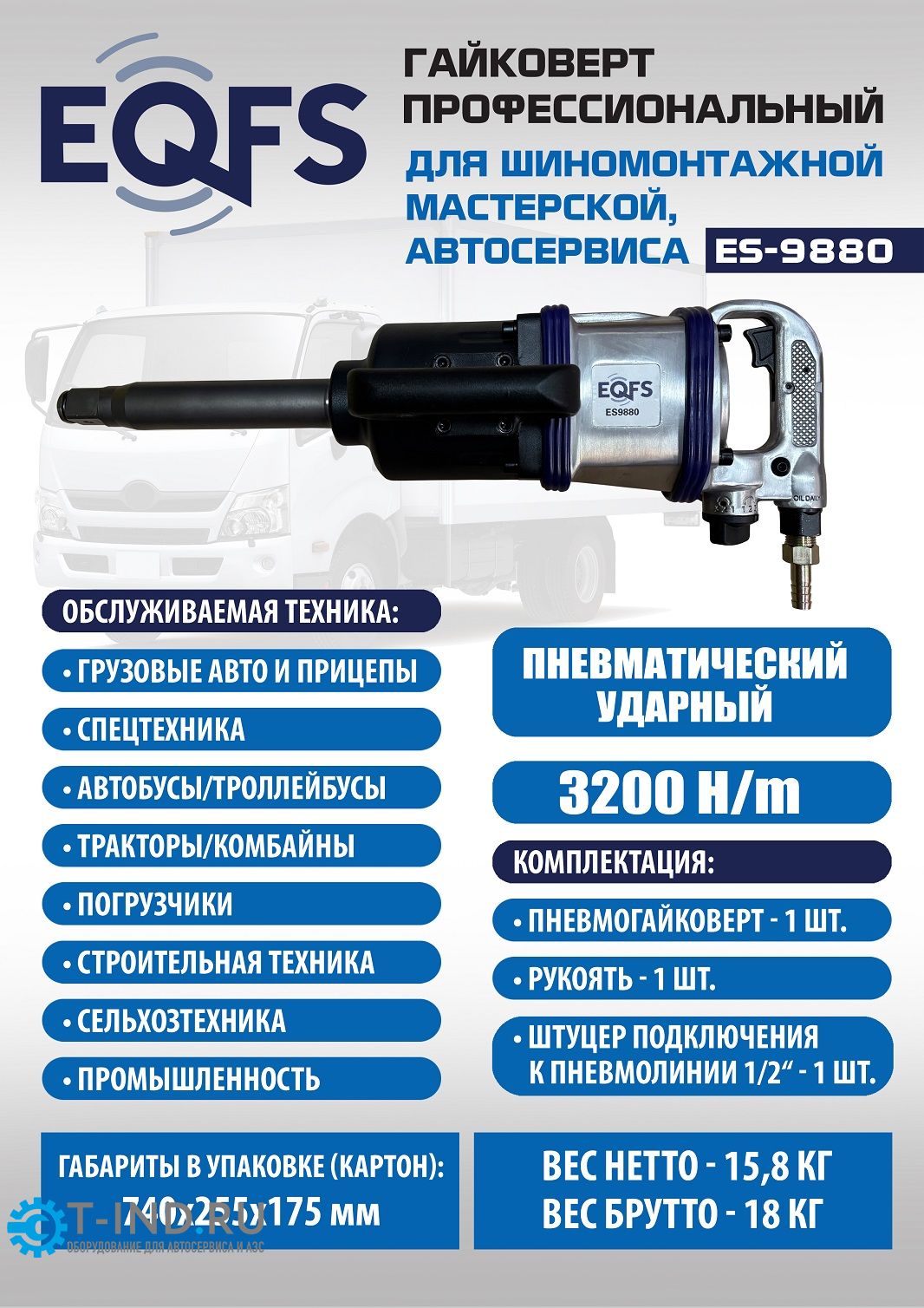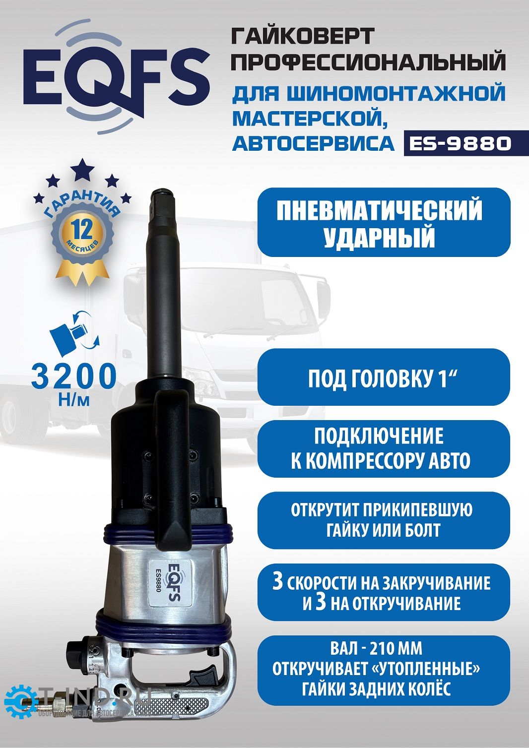 Пневмогайковерт ударный EQFS ES9880, 1", грузовой, 3200 Нм