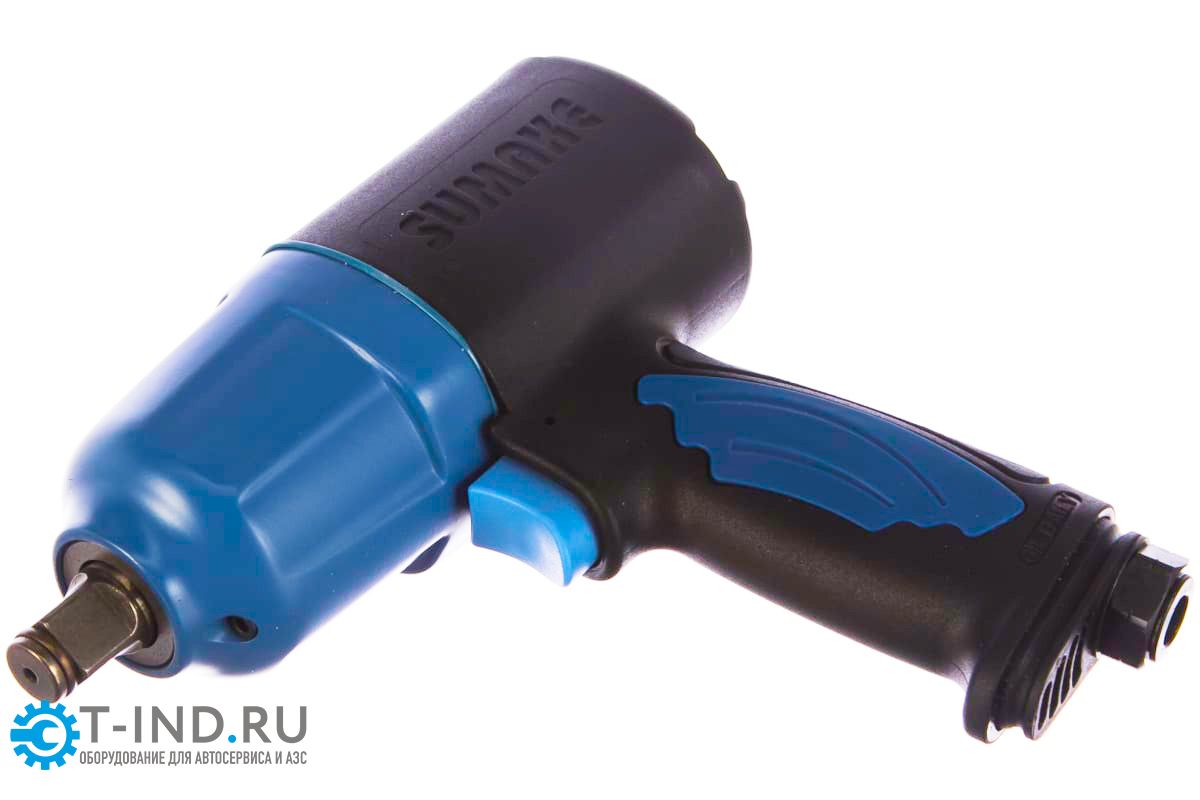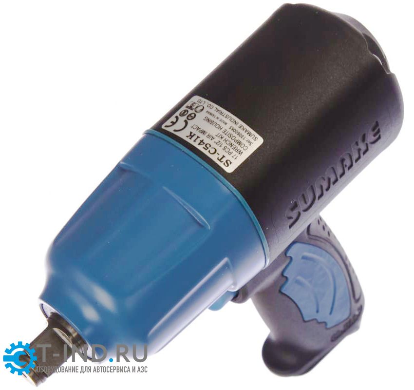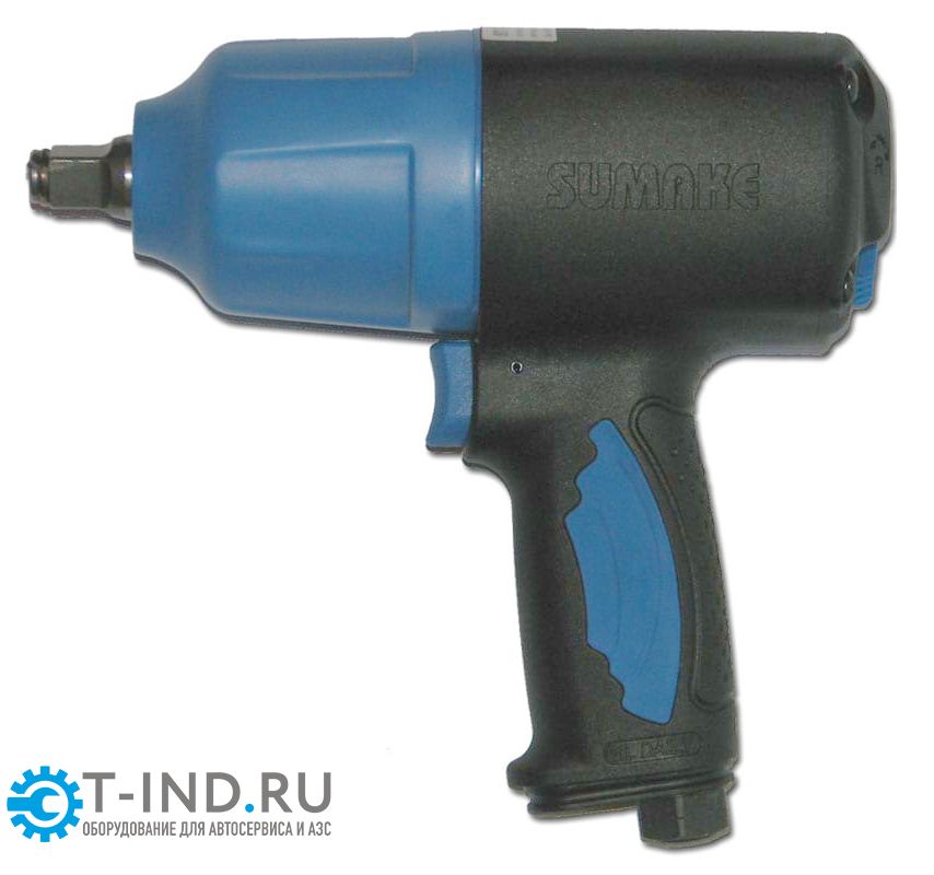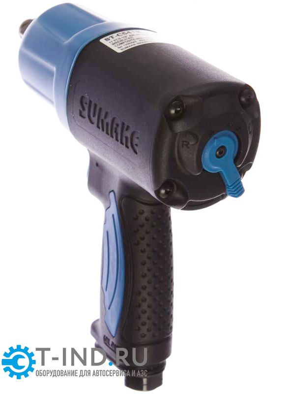 Гайковёрт SUMAKE ST-C541 работает на сжатом воздухе, благодаря чему не подвержен короткому замыканию и не может стать причиной возгорания на рабочей площадке. Модель пользуется популярностью в сфере автосервиса и позволяет заворачивать крепеж с моментом силы 542 Нм. Специальный выступ не дает рукояти выскальзывать из руки оператора.