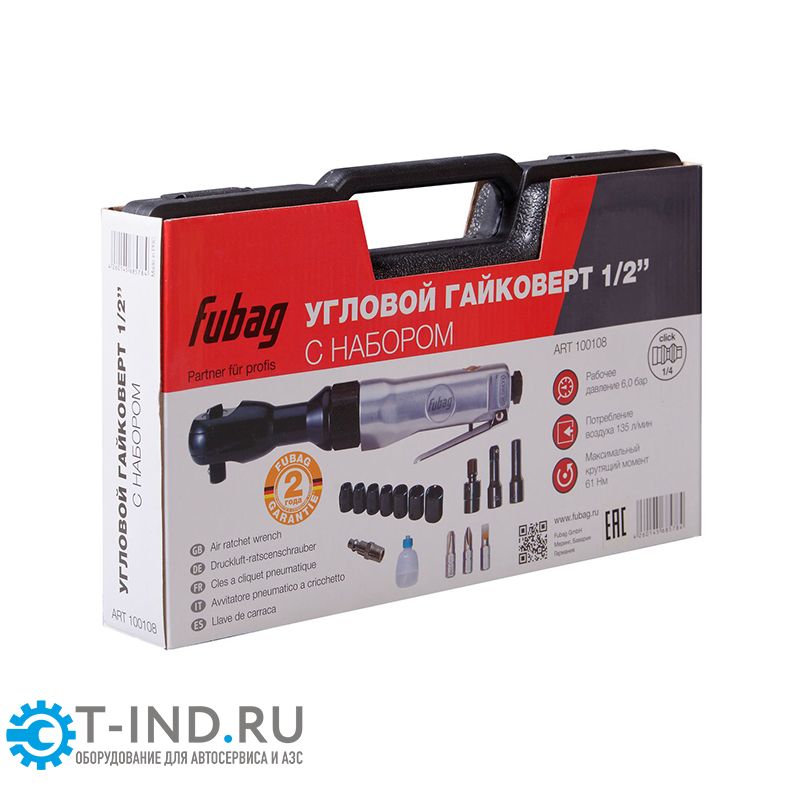 Пневмогайковерт угловой FUBAG RW61, 1/2", 61Нм, с набором головок