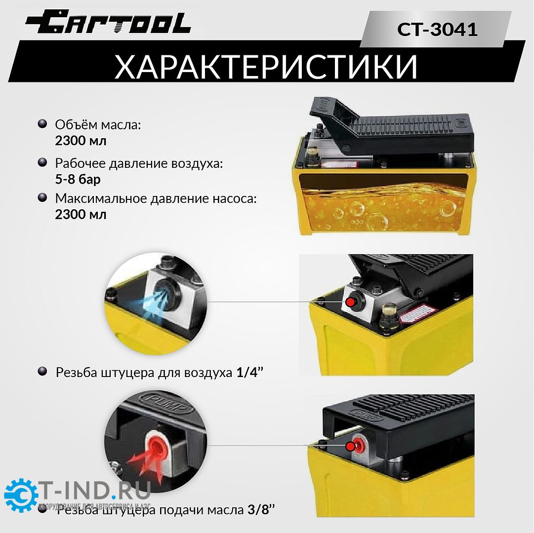 Гидравлический насос CT-A3041 — идеальный выбор для автосервисов и производственных участков, где ценят скорость, удобство и надёжность оборудования.