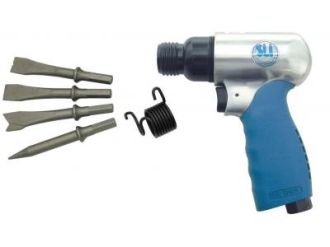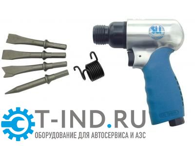 Пневматический молоток Sumake ST-M3008/H с комплектом 2 зубил. Предназначен для выполнения ударный, режущих и рубящих работ, например, удаления заклепок, снятия слоя старого покрытия или штробления. Компактный и мощный инструмент Корпус инструмента выполнен из легкого и прочного алюминиевого сплава, что облегчает работу оператора в процессе интенсивной эксплуатации инструмента.