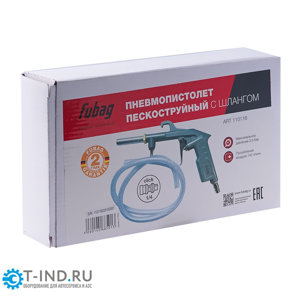 Пневмопистолет пескоструйный FUBAG 110116, с шлангом, 138л/мин, 3бар