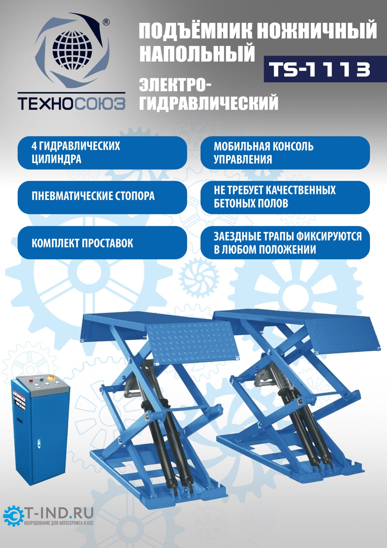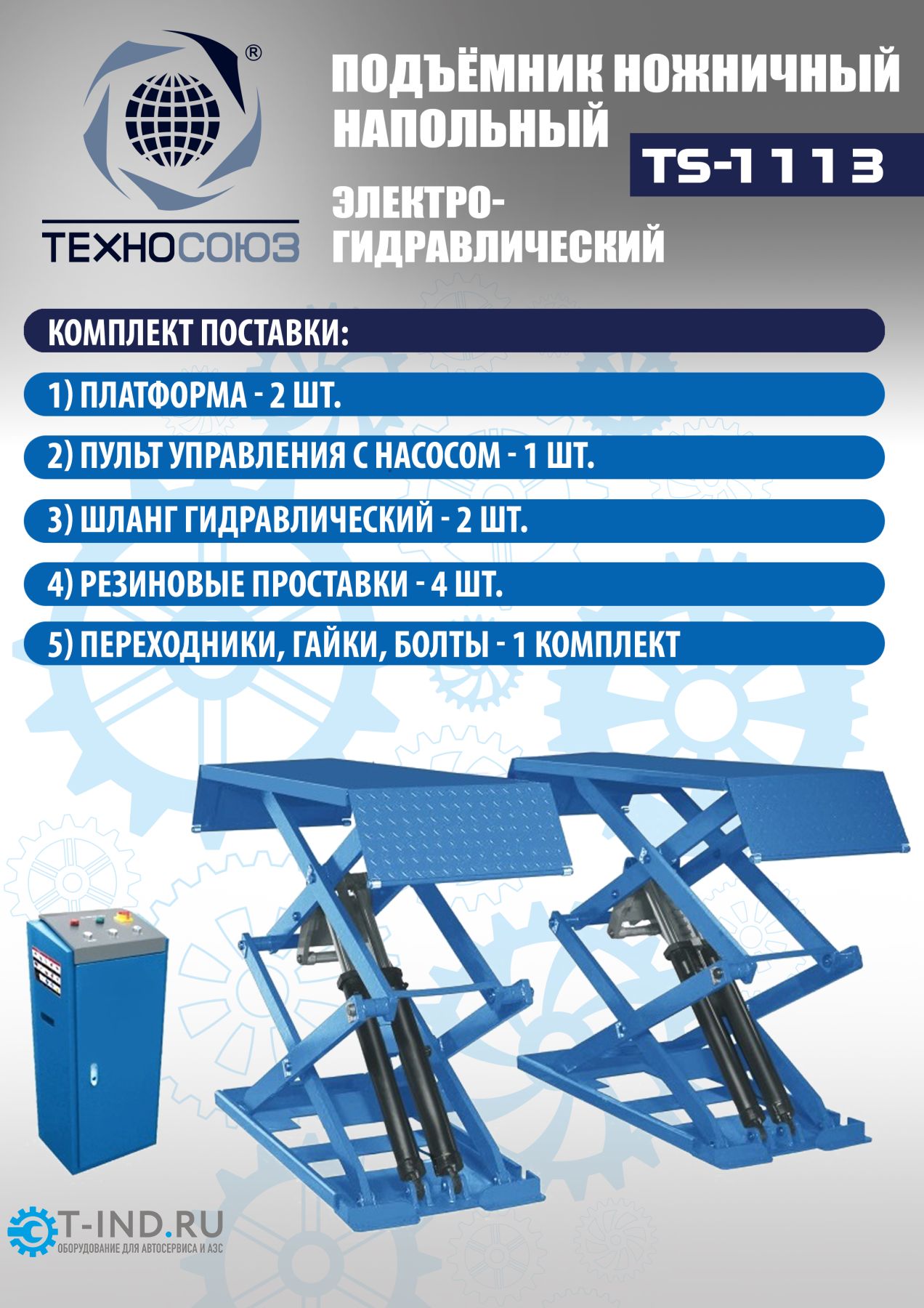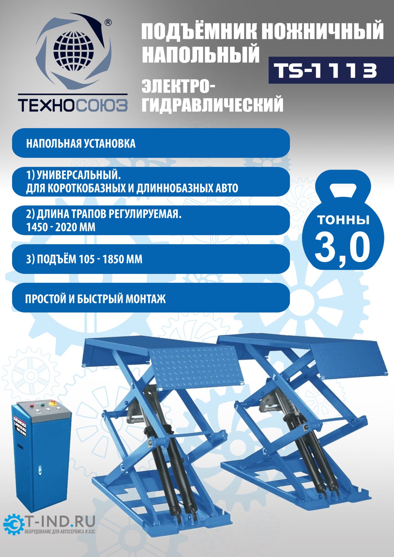 Подъемник автомобильный ножничный 3 тонны Техносоюз TS-1113, электрогидравлический, 220/380В