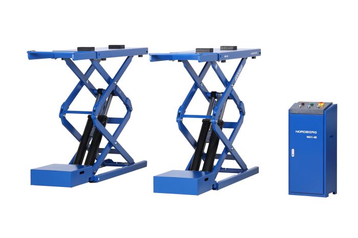 NORDBERG N631-4B_380 — электрогидравлический ножничный подъёмник, рассчитанный на подъём автомобилей массой до 4 тонн. Предназначен для безопасного и плавного подъёма легковых автомобилей и лёгких коммерческих транспортных средств при проведении технического обслуживания, диагностики и ремонта. Благодаря выдвижной секции и широким платформам оборудование подходит для автомобилей с различной колёсной базой.